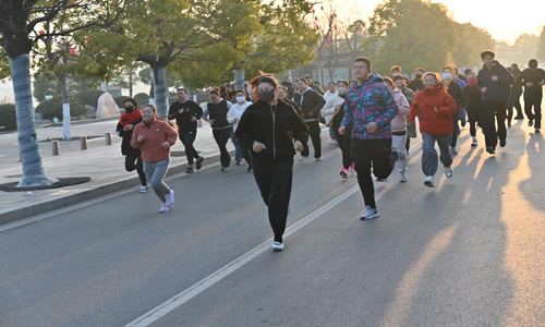 未参加欢乐跑的员工跟着大部队健步走。活动现场,大家精神饱满,兴致高昂,喊出响亮的口号,带上愉悦的心情,迈着轻快的步伐,沿着大龙湖运动跑道大步向前走。他们相互交流、互相鼓励,用朝气蓬勃、昂扬奋斗的精神面貌为寒冷的冬天增添一抹亮色。