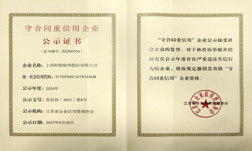 近日,江苏省企业信用管理协会正式发布2024年度“守合同重信用”企业公示名单,上药控股徐州股份有限公司凭借多年诚信经营与卓越履约能力,再度荣登榜单。这份沉甸甸的荣誉,既是对企业长期坚守契约精神的认可,更是对公司在药品流通领域践行“诚信为本”理念的生动注脚。
