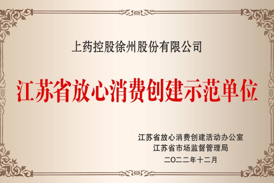 上藥徐州榮獲“江蘇省放心消費創(chuàng)建示范單位”稱號公司被江蘇省放心消費創(chuàng)建活動辦公室、江蘇省市場監(jiān)督管理局評為“江蘇省放心消費創(chuàng)建示范單位”。了解詳情2023/3/15 10:25:09 -